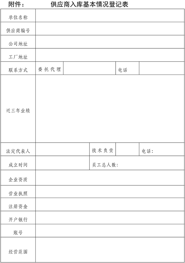 附件:供应商入库基本情况登记表